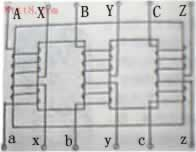 在三相變壓器中,每一芯柱均繞有原繞組和副繞組,相當(dāng)于一只單相變壓器.三相變壓器高壓繞組的始端常用A,B,C,末端用X,Y,Z來(lái)表示.低壓繞組則用a,b,c和x,y,z來(lái)表示.高低壓繞組分別